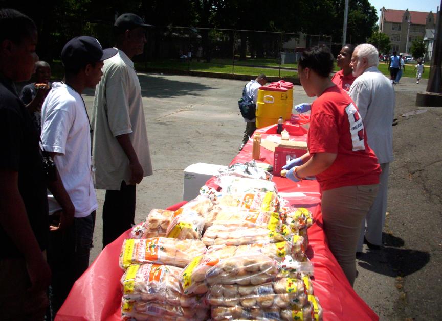 (on the far left) get their hot dogs and drinks, the Mayor (on